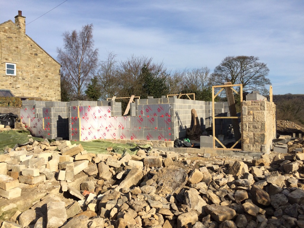A unique three bedroom, two bathroom new build home. This home has beeen constructed on the site of an old barn using reclaimed materials fro the original barn. All the stone work has been reclaimed from the barn to ensure the building fits skillfully and sympathetically into the surrounding areas. This build is very close to completion. The photos below show the build from the beginning to present day.